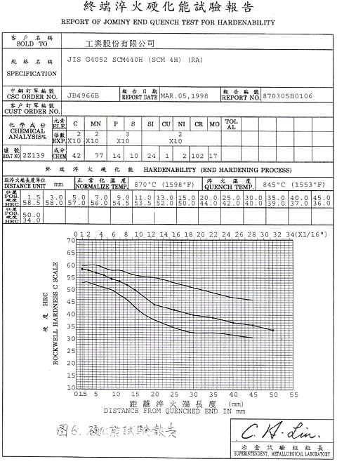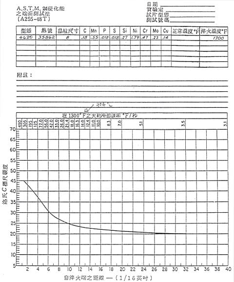 如此應用Jominy曲線於熱處理前即可推測淬火硬度。