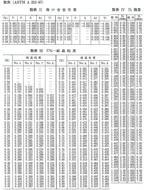 表Ⅰ~ Ⅳ 為硬化能計算用的數表。